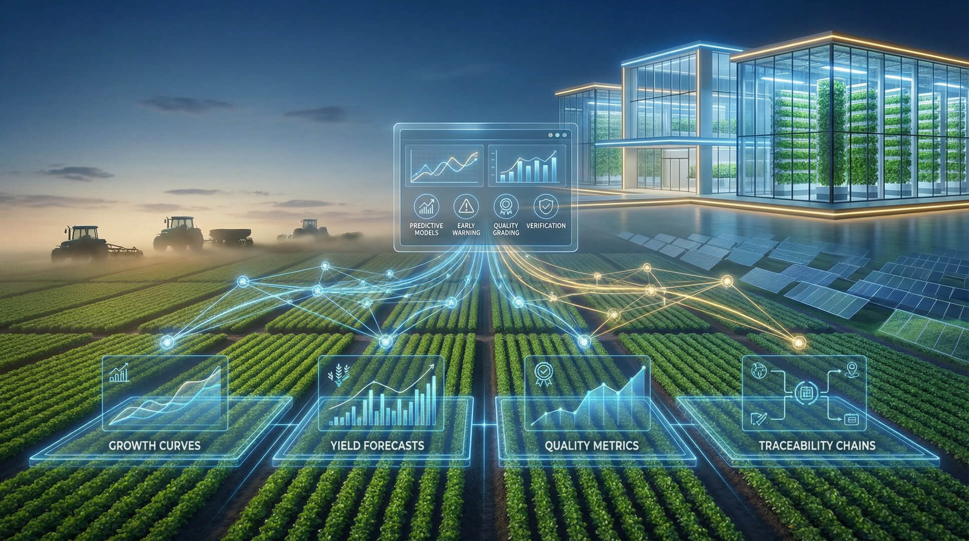 我们用 AIoT 感测把土壤、气象、环境与作物状态持续“在线化”,再由农业大模型进行趋势判断与风险预警。系统会提前给出关键节点的行动建议(例如灌溉节奏、水肥配方、控温控湿、病虫防治窗口),让决策从“凭感觉”变成“有依据”。你看到的不只是数据,而是更稳定的产量、更可控的品质与更可预期的交付。